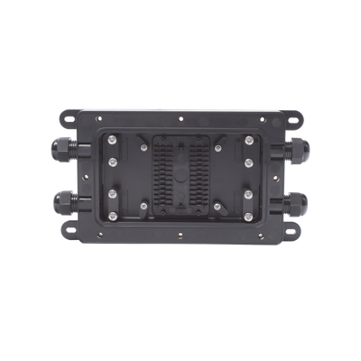 Adminte un total de 12 empalmes por fusión y 2 empalmes mecánicos que se colocan de forma segura dentro del cierre con protección al ingreso IP68. El DFE104 se puede enterrar permanentemente o montarse en el lateral de un edificio.