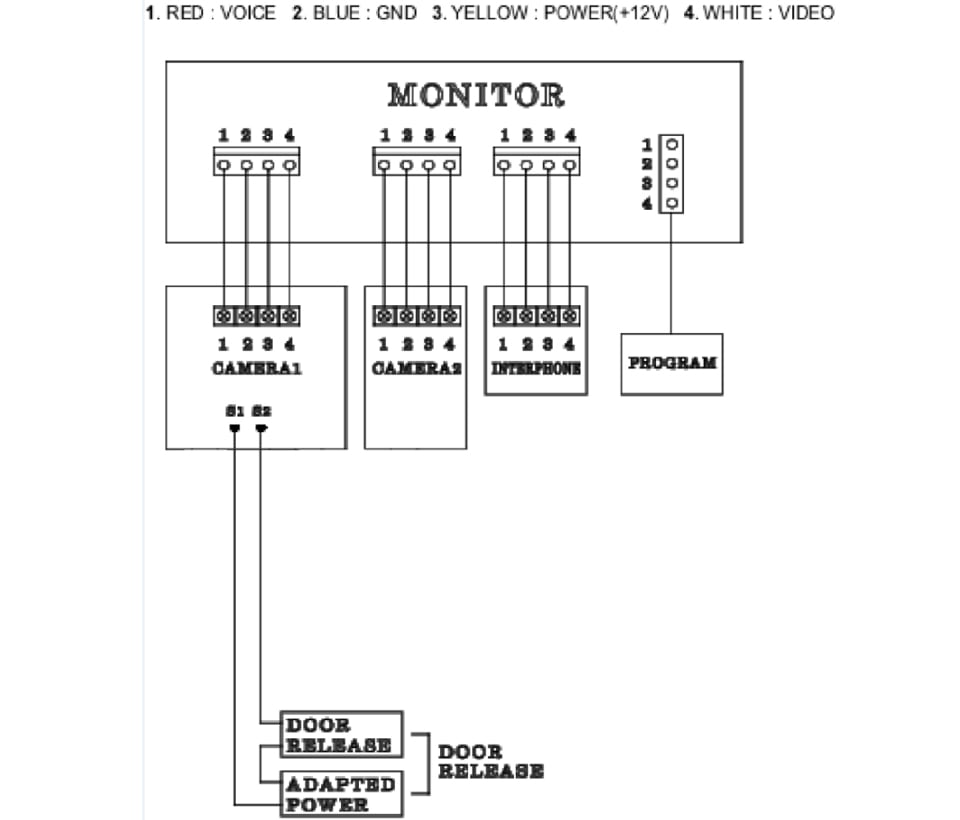 - Cableado: 4 hilos con frente de calle (Polaridad) 4 hilos con un interphone (polaridad).