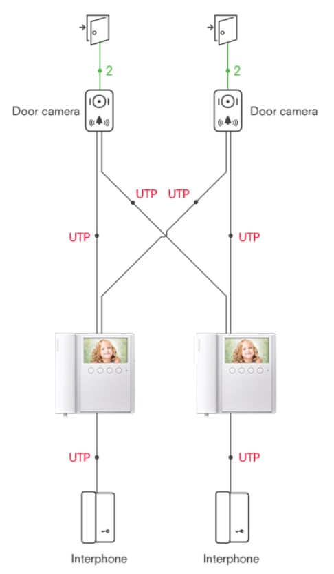 Es expandible hasta 2 monitores cámaras de 2 puertas y 2 interfonos y aumenta la comodidad desde una ubicación.