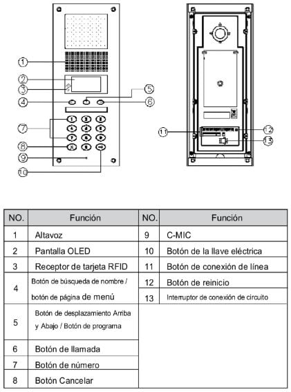 - Distribución de cableado: Distribuidor de piso (6 hilos) estación de guardia (4 hilos) interfonos (2 hilos no-polaridad).
