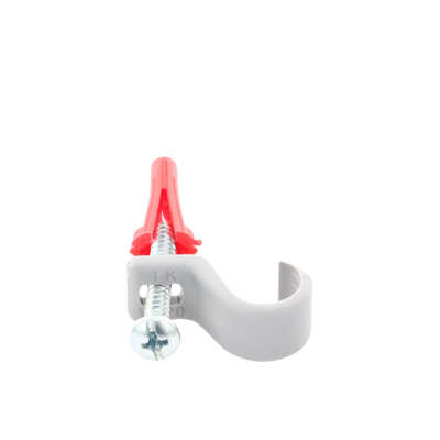 Kit de 8 grapas 8 taquetes y 8 tornillos para sujetar conductores redondos o tubo en muro (para tubo de 1/2) (2104-07240)