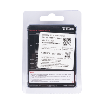 El balún de video TT-101-FTURBO es un dispositivo pasivo que permite la transmisión de señales de video CCTV HD en tiempo real a través de un cable de par trenzado, cuenta con conectores de Cobre que ofrecen mayor conductividad, mejor desempeño en altas frecuencias(Video HD y largas distancias) y mucho menor atenuación, algunas de las principales ventajas de este equipo es que cuenta con TVS (supresor de voltaje transitorio) de estado sólido incorporado para protección contra sobretensiones, es antiestático, ofrece protección contra rayos Grado 3, Inmunidad al ruido y diafonía de 60 dB. y rechazo excepcional de interferencias. Es compatible con todas las cámaras analógicas HD-TVI/ CVI/ AHD/ CVBS y ampliamente usado en cámaras de CCTV, monitores, DVR, conmutadores, codificadores IP y otros equipos CCTV. Sus terminales PUSH-PIN facilitan la conexion del par de cables UTP uno de los tranceptores cuenta con coleta (PIG TAIL) para una facil conexion al dvr. Definitívamemte en equipo Premium,la competencia no ofrece tanto en sus productos.