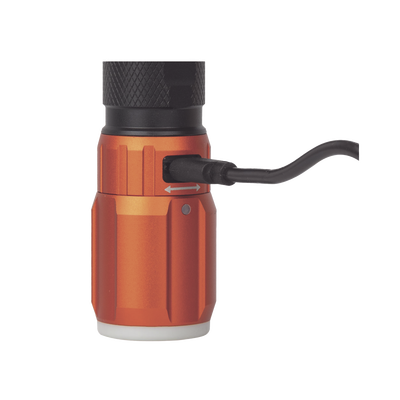 - Luz LED tricolor que indica la vida útil de la batería y collarín de carga que gira para recargarla usando el cable USB-C incluido