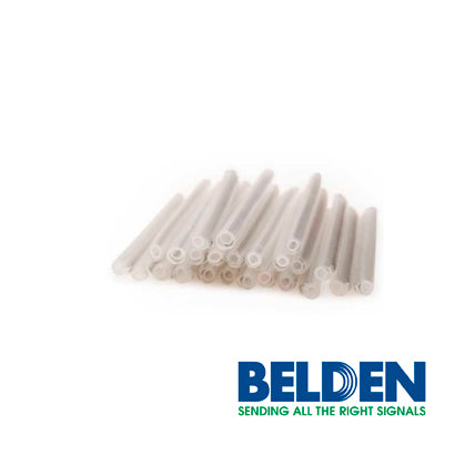FXFUHS900AB25 BELDENMangas de empalme. Tubo de vinil termocontráctil transparente para empalme de fibra óptica con refuerzo inoxidable en su interior para proteger la fusión en la fibra óptica.Diseñado para usos interior / exterior Protege la union por fusion en un empalme de fibra optica. Paquete con 25 piezas Largo 60 mm Protector 900 micras