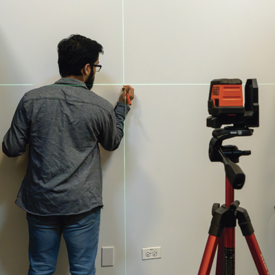 - El láser de alta precisión proyecta líneas limpias con una precisión de 3/16 a 33 (10 m); la detección automática de desnivel hace que el láser parpadee cuando deja de estar nivelado