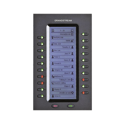 El módulo de extensión GXP2200EXT es soportado por el GXP2140, GXP2170, GXV3240 y GXP2200. El módulo incluye 20 teclas de extensión de dos colores y dos teclas de flecha para cambiar de página, permitiendo a cada GXP2200EXT contar con hasta 40 extensiones. Tiene una gran pantalla LCD retroiluminada para fácil visualización. Se pueden conectar hasta 4 módulos GXP2200EXT para tener un total de 160 contactos/extensiones.