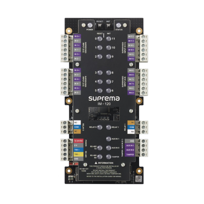 El modul de Entrads es un Modulo de Extencion de multiples entradas el cual puede controlar hasta 12 entradas supervisadas, 1 tamper switch y  2 relevadores. Un total de  31 unidades puedesn ser conectadas a  un equipo Maestro via RS485 en conexion en cascada. Esto permitiendo usar las entradas para enlazarlas a sensores o contactos de puertas etc., y tambien como el brindar una sencilla interface de contacto seco a otros sistemas.